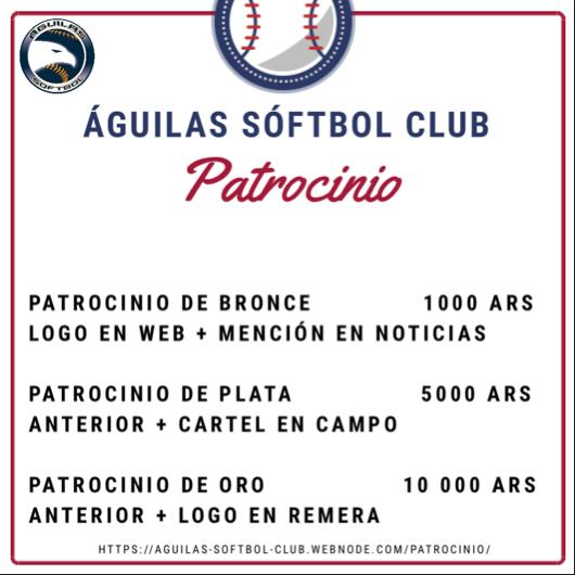 El club de sóftbol Águilas que resurge con el apoyo del Programa de Deportes de la provincia de San Luis inauguró recientemente su campo con medidas reglamentarias. El impulso dado por el gobierno provincial fue muy provechoso pero aun quedan algunos detalles por limar. Con el objetivo de mejorar las condiciones del terreno tanto para jugadores como para espectadores el club ha lanzado las propuestas de patrocinio. Esto permitirá la adquisición de implementos deportivos con el objetivo de aumentar la calidad deportiva del club para así, poder participar en presentaciones a nivel regional y nacional. Desde el club agradecemos toda ayuda que puedan ofrecer y esperamos que se unan a la familia de amantes de este hermoso deporte.